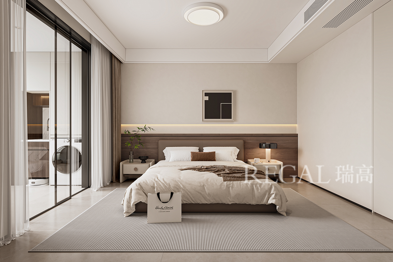 空间上以利落直线划分功能场域,隐形收纳系统消融冗余,浅灰基底交织原木肌理与哑光岩板,金属饰条作点睛之笔,摒弃繁复装饰,于材质本真与比例平衡中传递静谧质感,既契合现代起居的实用诉求,更彰显克制而高阶的居住美学。