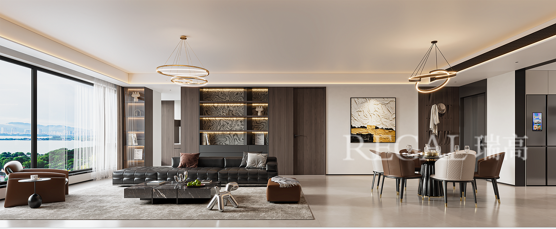 公共区域客餐厨一体化布局,光线与视线自由流通,营造互动空间。