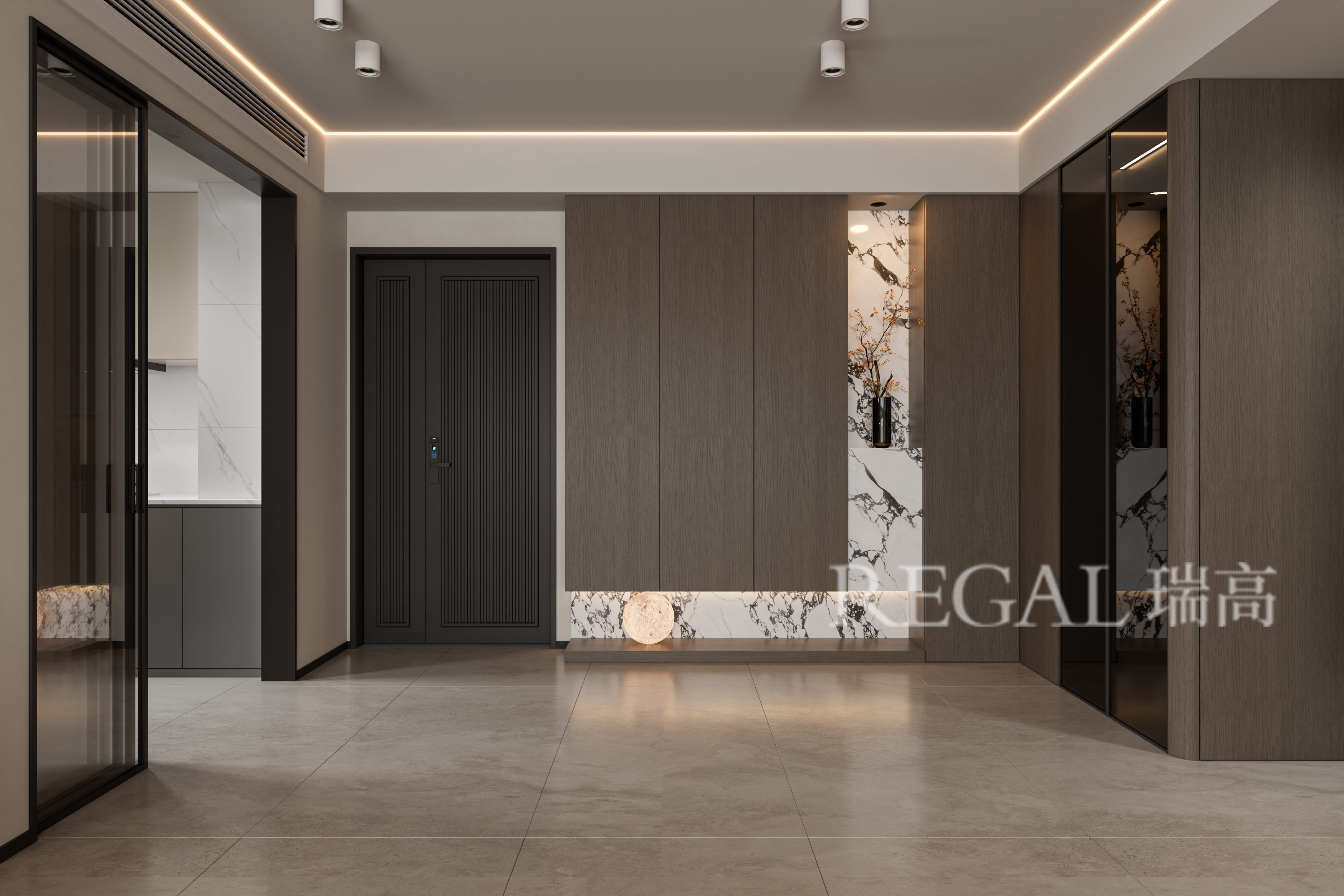 玄关作为入户的过渡区域,布局紧凑,储物柜的设置满足了日常收纳需求,同时与相邻空间自然衔接。