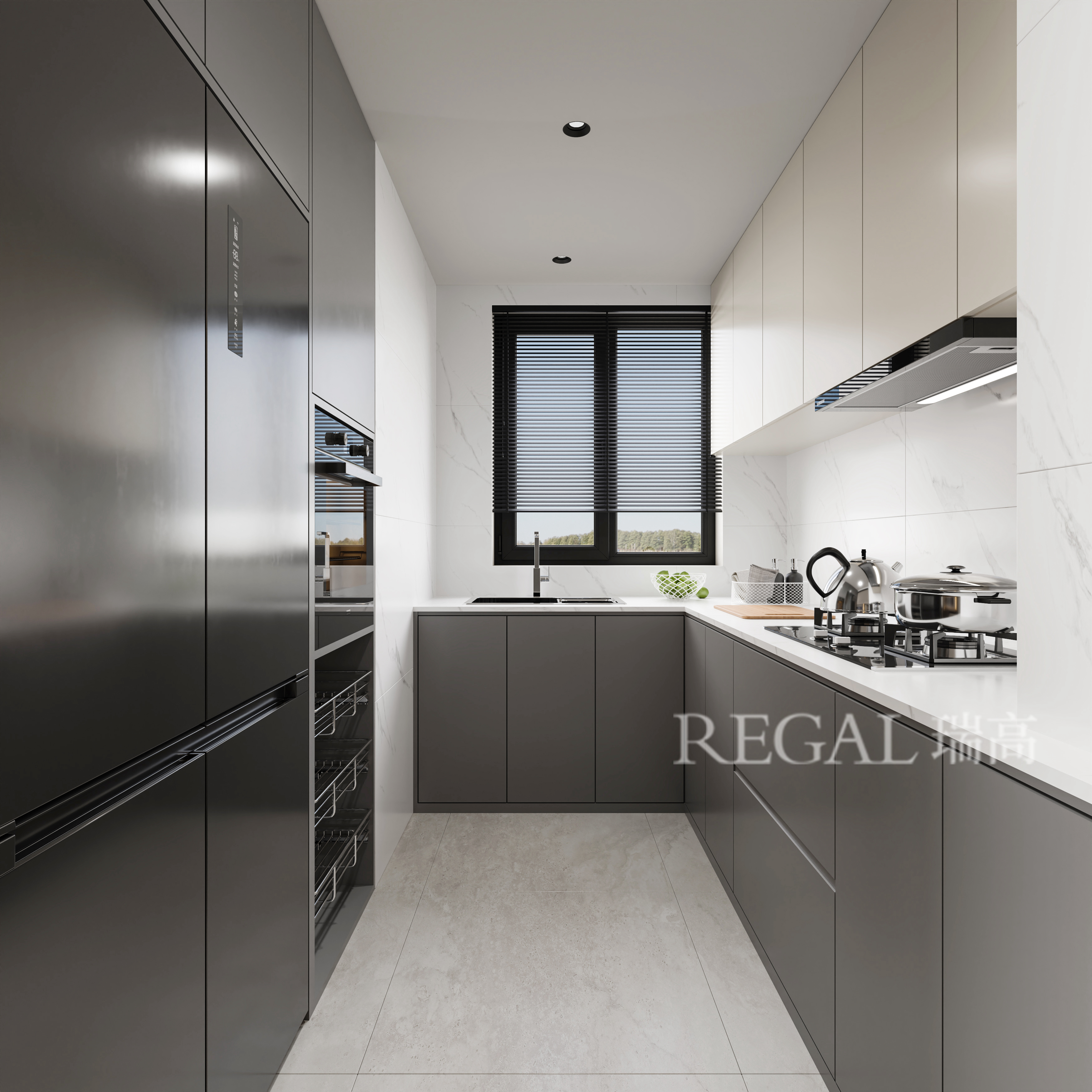 厨房采用高效的布局方式,L形操作流程符合人体工程学,提高了烹饪效率。各个空间的布局既满足了不同的功能需求,又保证了居住者在空间内活动的便利性和舒适性。