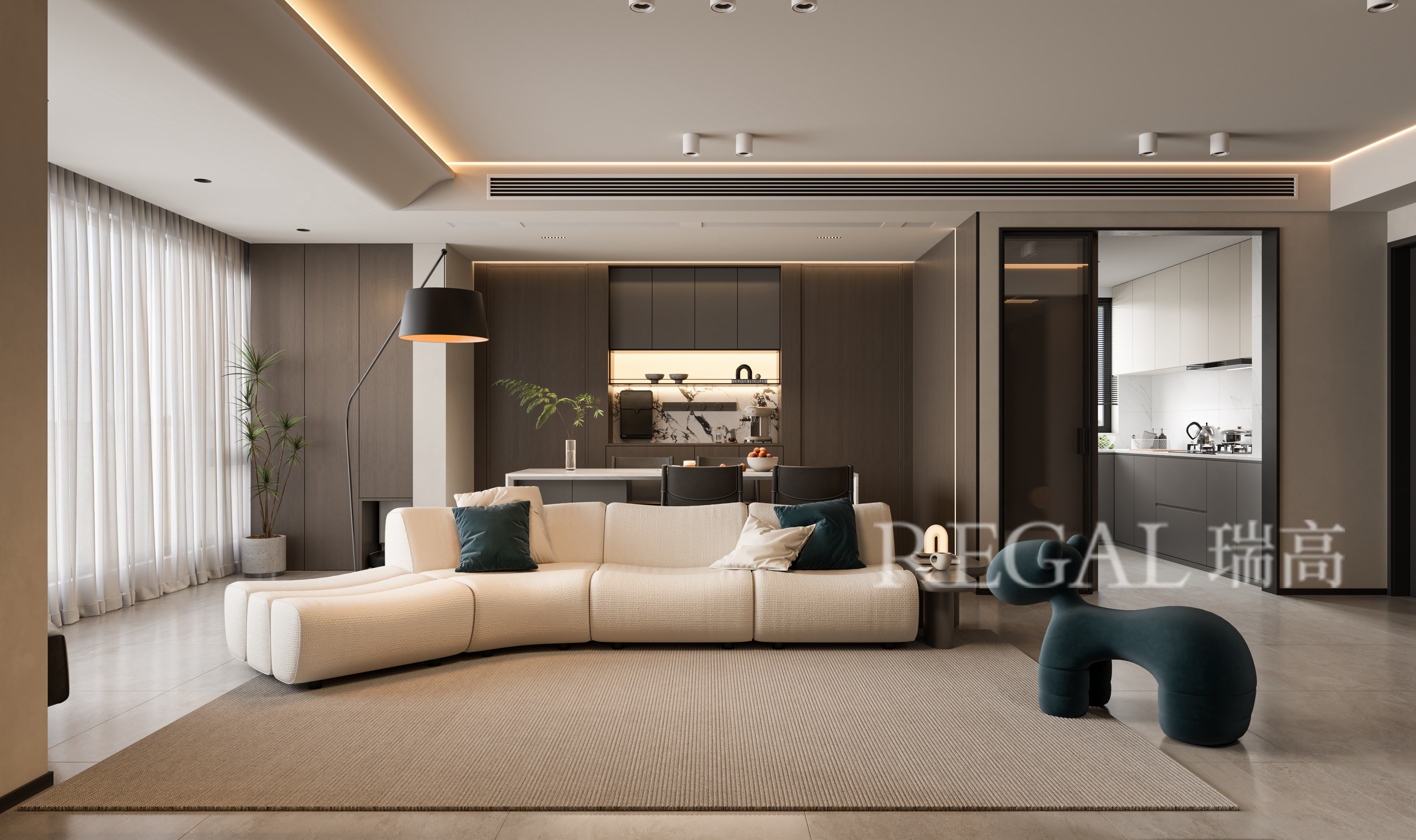 客厅采用开放式设计,与餐厅相连,增强了空间的通透感和互动性,动线流畅,方便家庭成员之间的交流与活动。