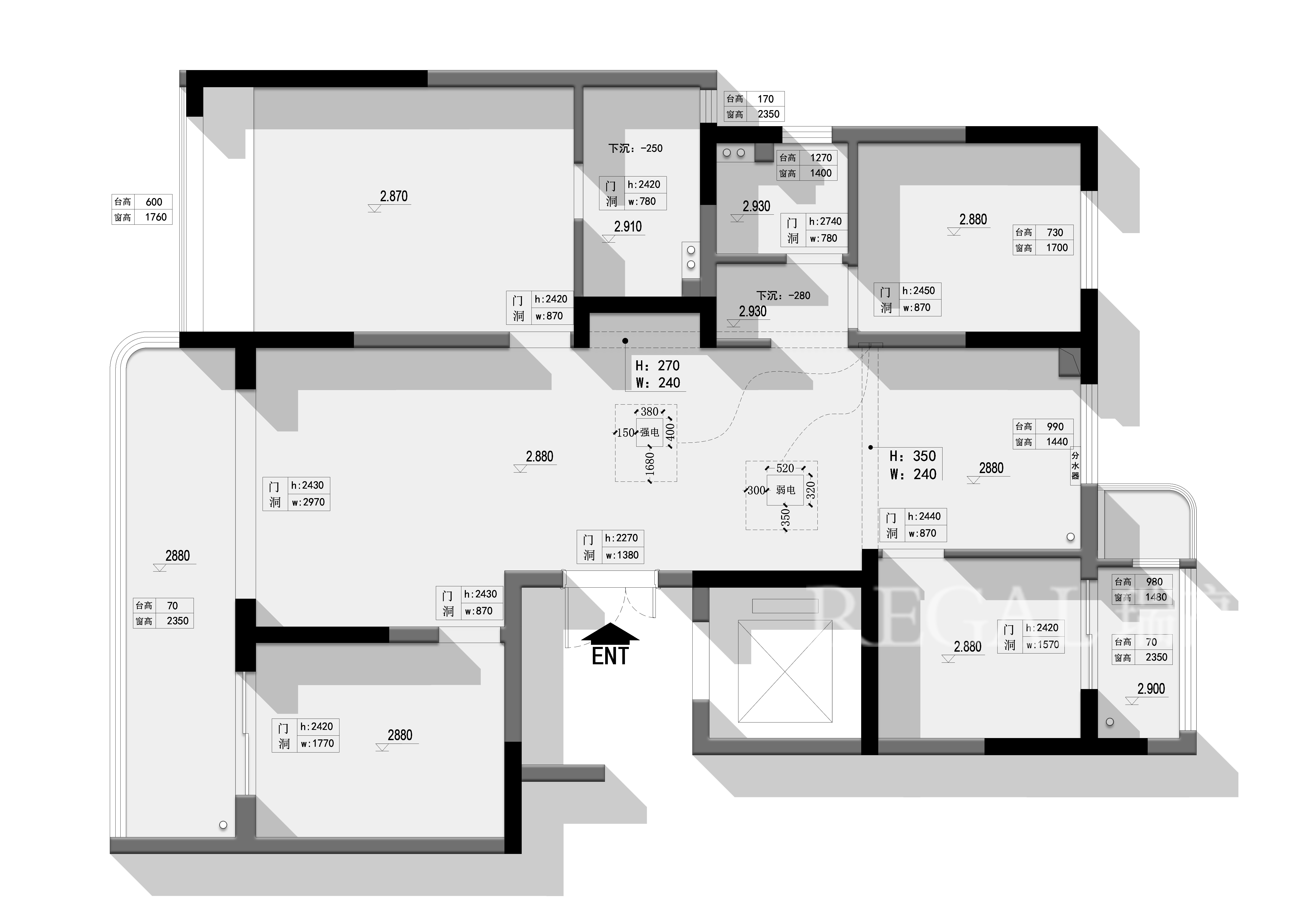 本案设计注重空间层次感与色彩对比,通过简约硬装与精致软装打造高级感。色调上以黑白灰为主,点缀色彩艳丽的艺术画作,和黑色木饰面形成强烈对比,增强空间层次。同时通过米灰柔光地砖、白色柜体等元素平衡视觉,避免压抑感。