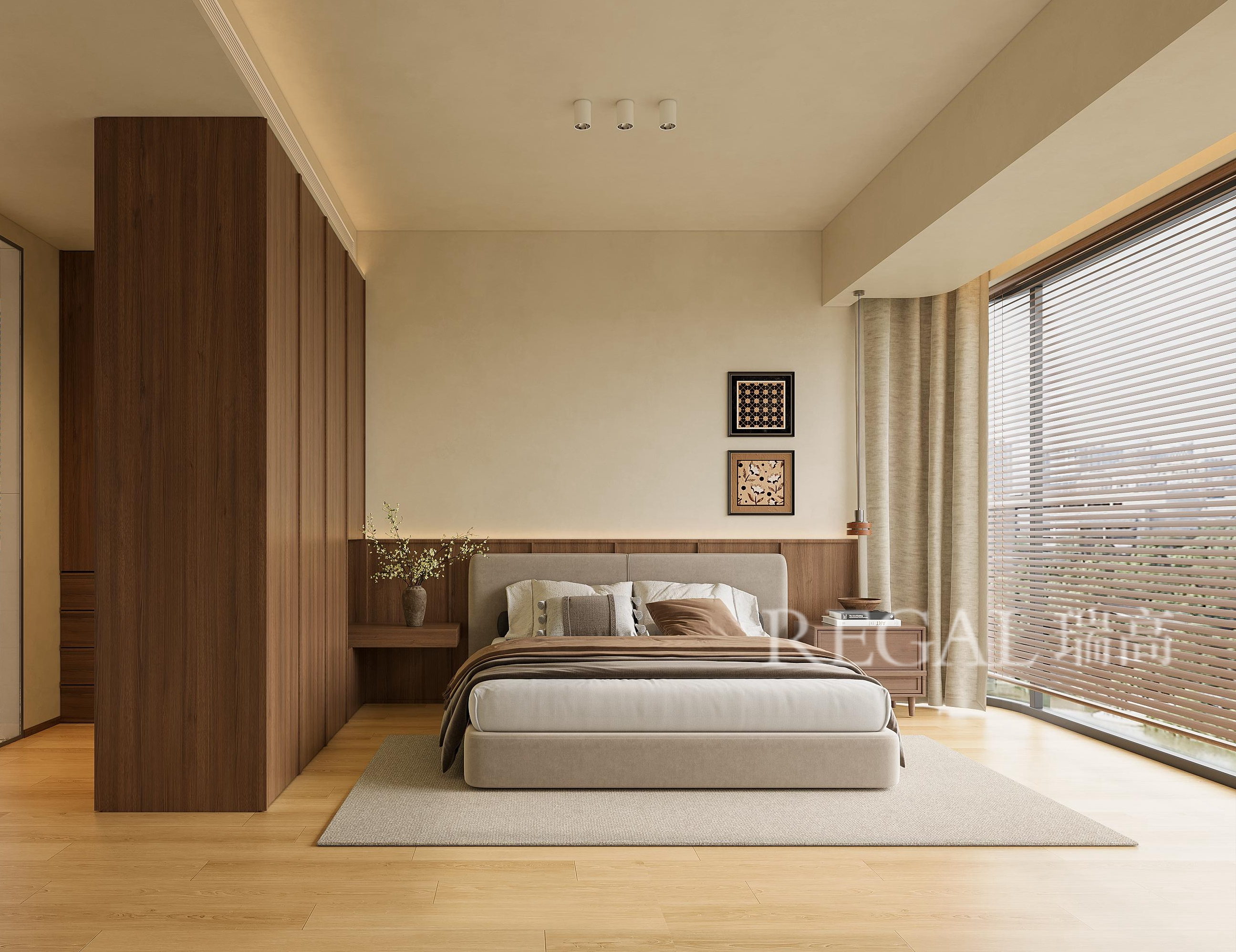 本案例注重天然材质与人工材质的合理搭配,木材广泛用于地板、家具等,展现自然纹理和温润质感,增添自然质朴气息。
