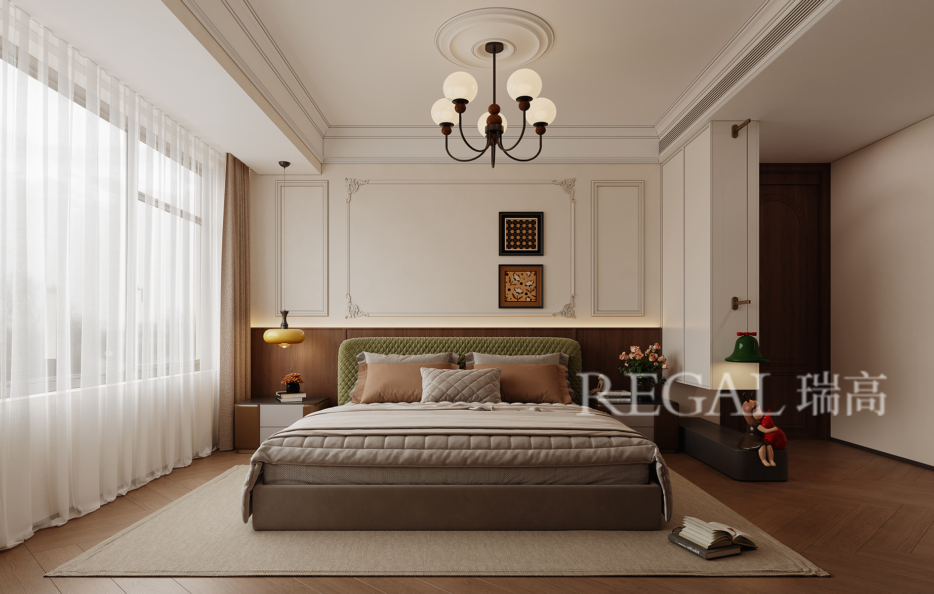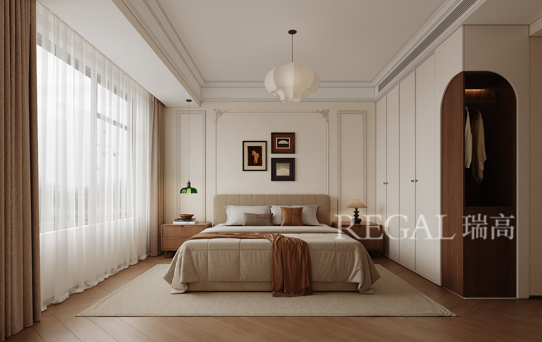 本方案为定义为法式中古风,通过线条的对称的仪式感,家具和造型线条的干净流畅,强调功能性与美感的平衡,色彩以中性主色调营造宁静基底,天然材料的原始质感与新旧对比,最后通过灯光设计、装饰挂画来丰富细节,烘托氛围。