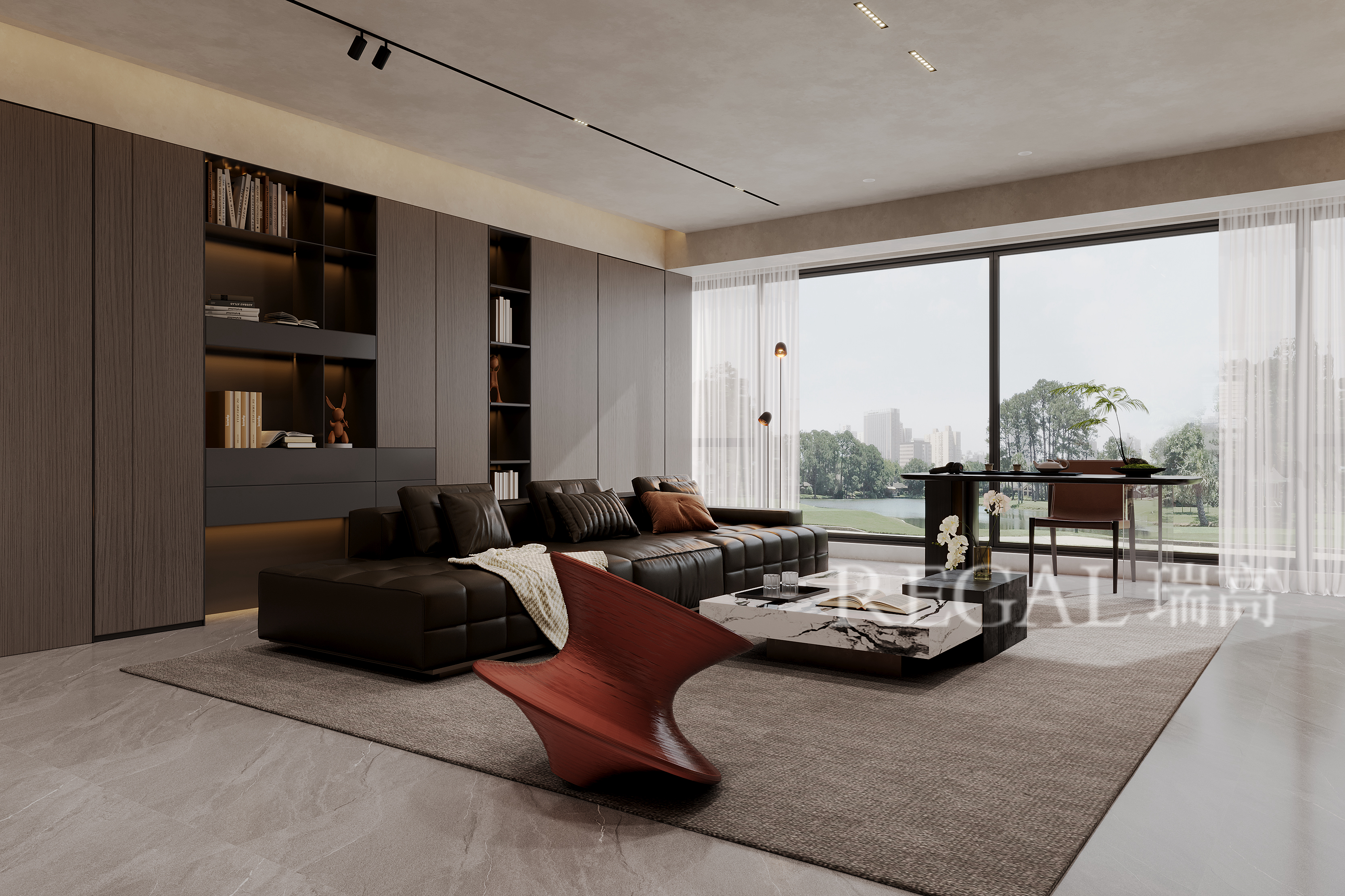 “简而不减,质藏于形” 以意式极简为内核,借大面积落地窗引天光入境,让光影流动勾勒空间纯粹轮廓。
