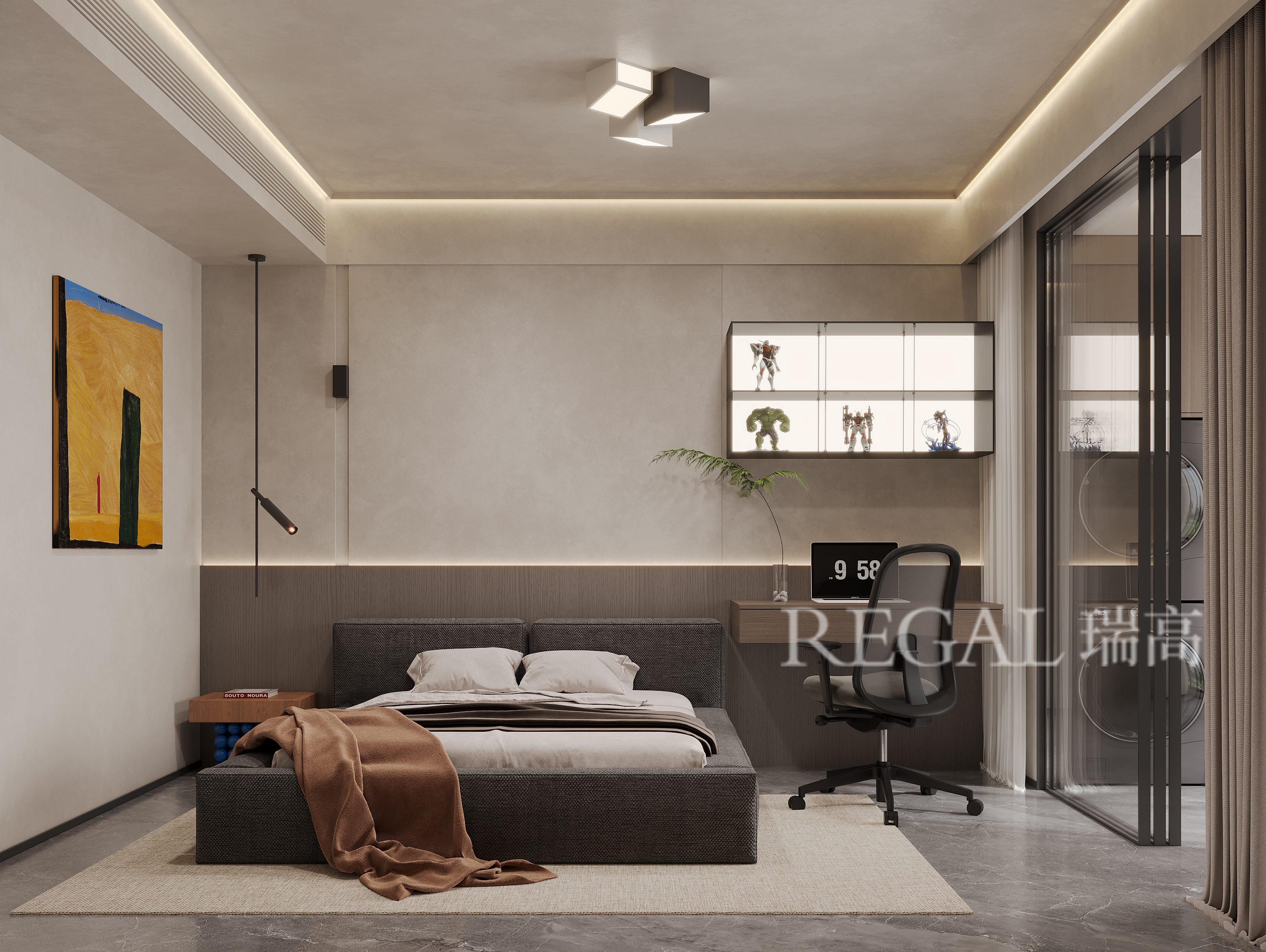以意式轻奢为内核,通过米白、暖棕与金属质感的精妙糅合,于空间中铺陈优雅格调。弧形线条柔化结构,大理石与实木材质碰撞出精致肌理,灯光层次营造奢适氛围,同时融入电竞区等个性场景.