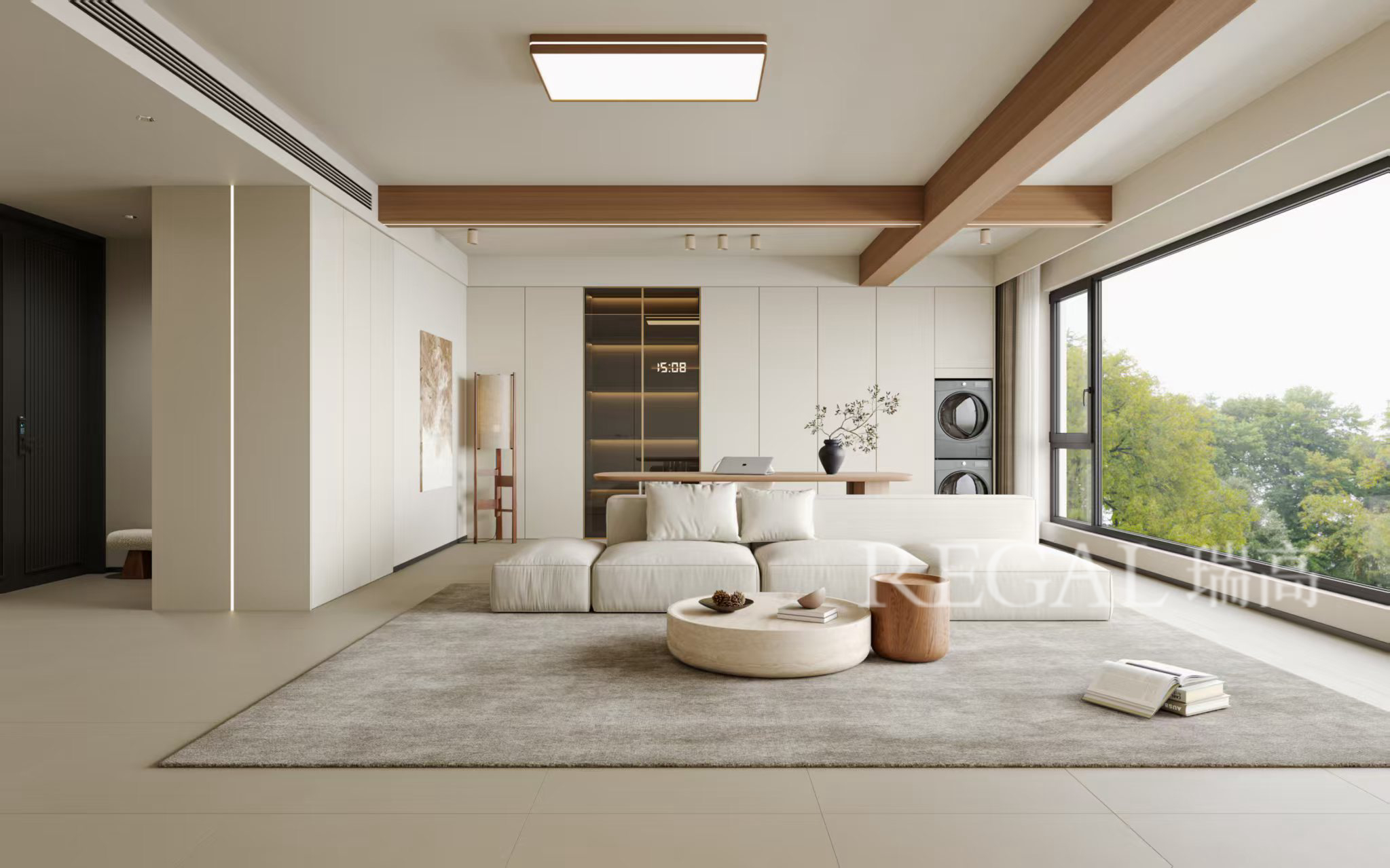 以暖调米白为基底,融入浅木色肌理,让空间在松弛感中传递温和质感。