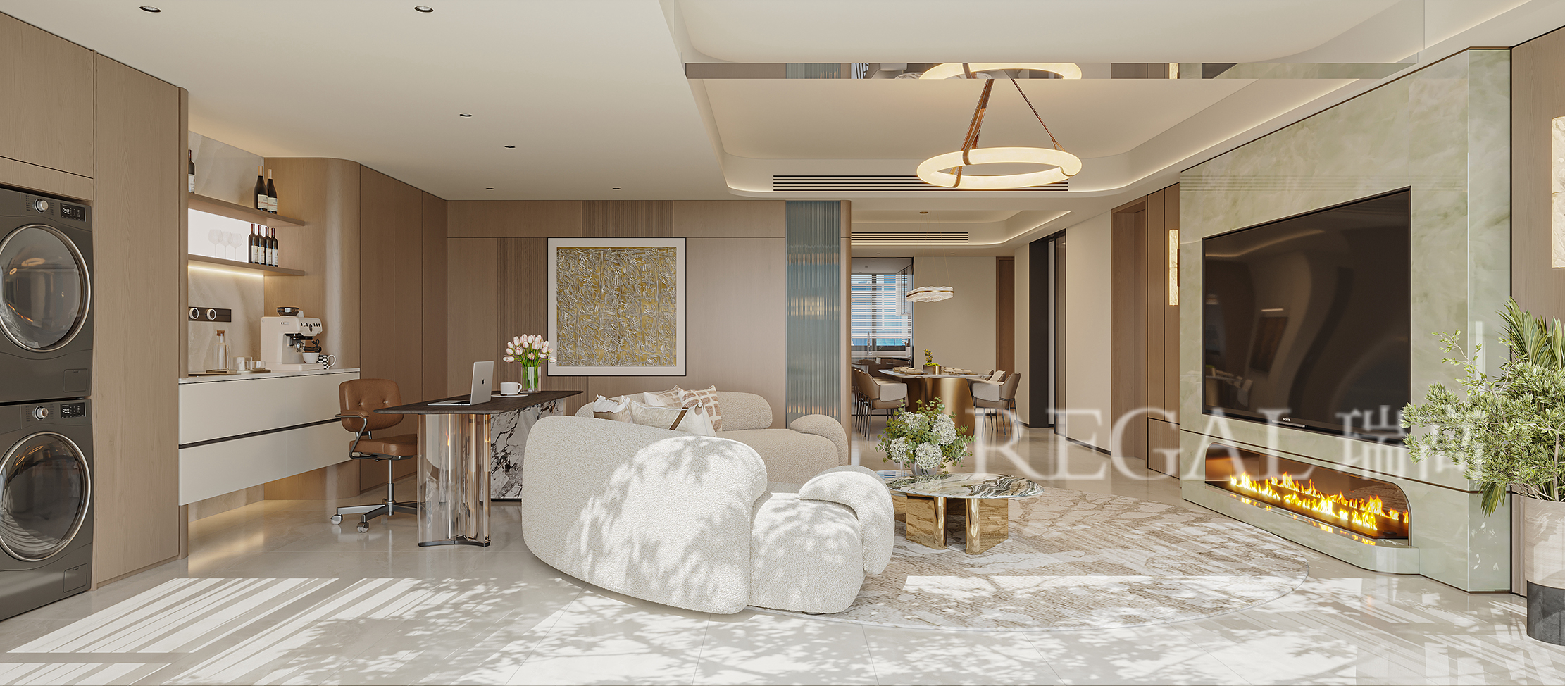 现代轻奢风的开放式住宅,核心是客餐厅一体化,将工作、休闲、社交功能完美融合,氛围温暖又高级。
