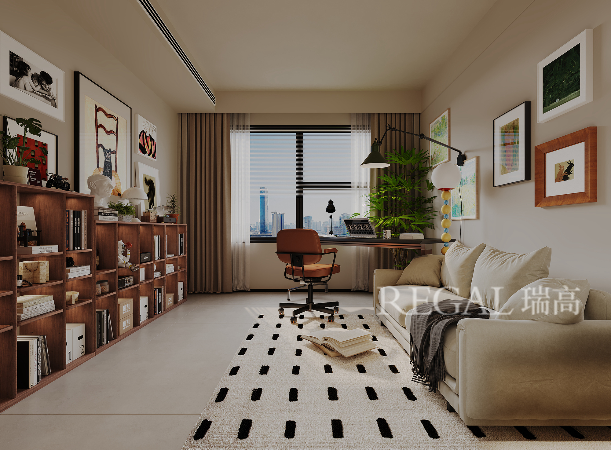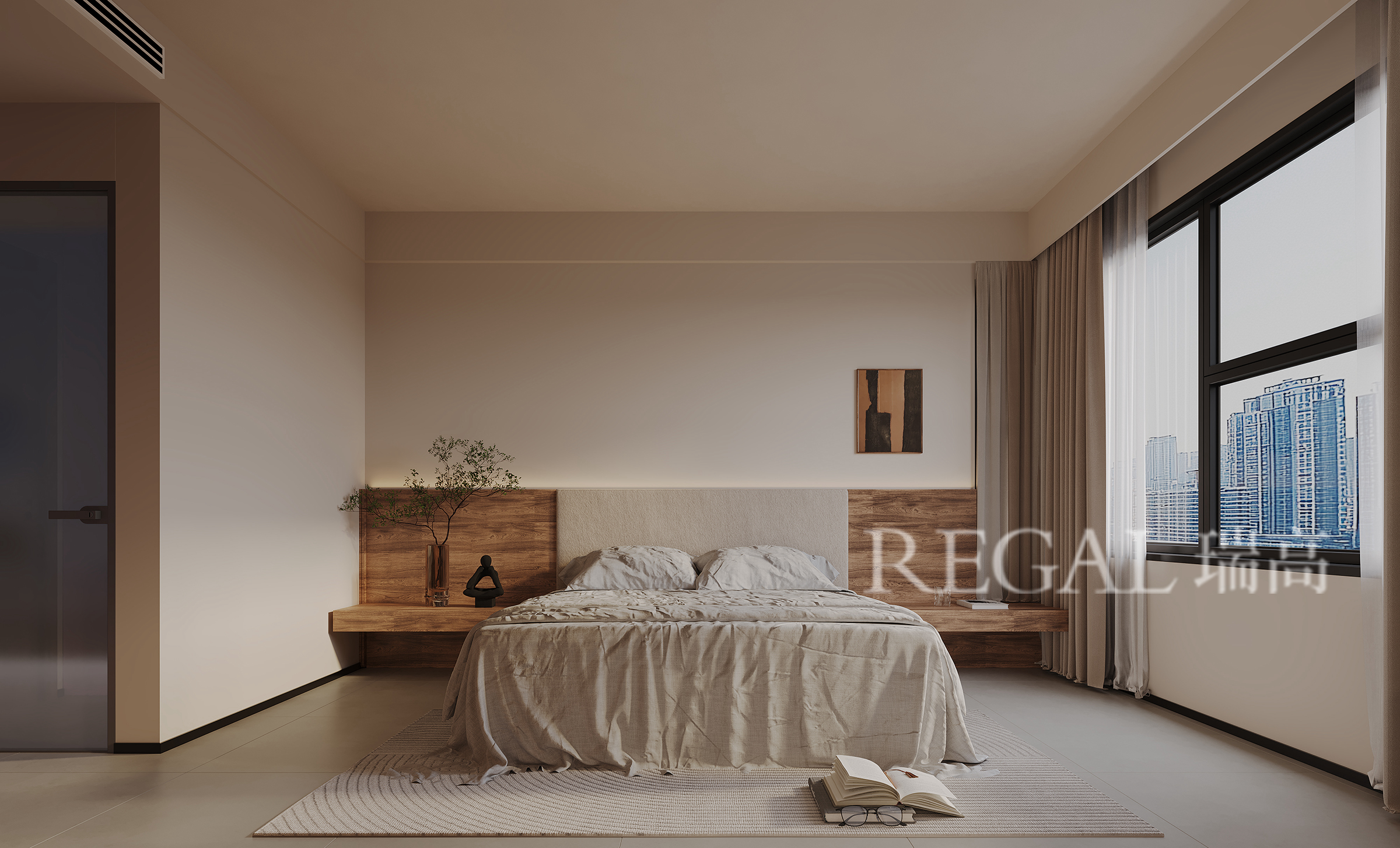 软装与细节 搭配线条简洁的实木与复古皮革家具;以抽象画、手工陶艺和绿植点缀,注入自然生机。