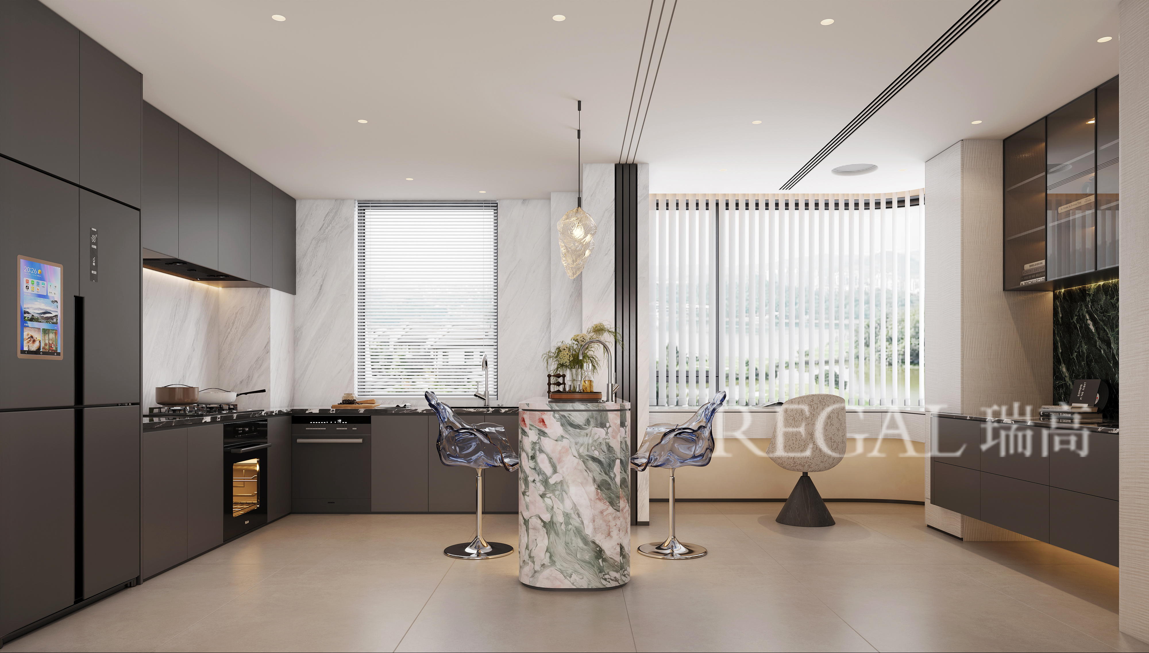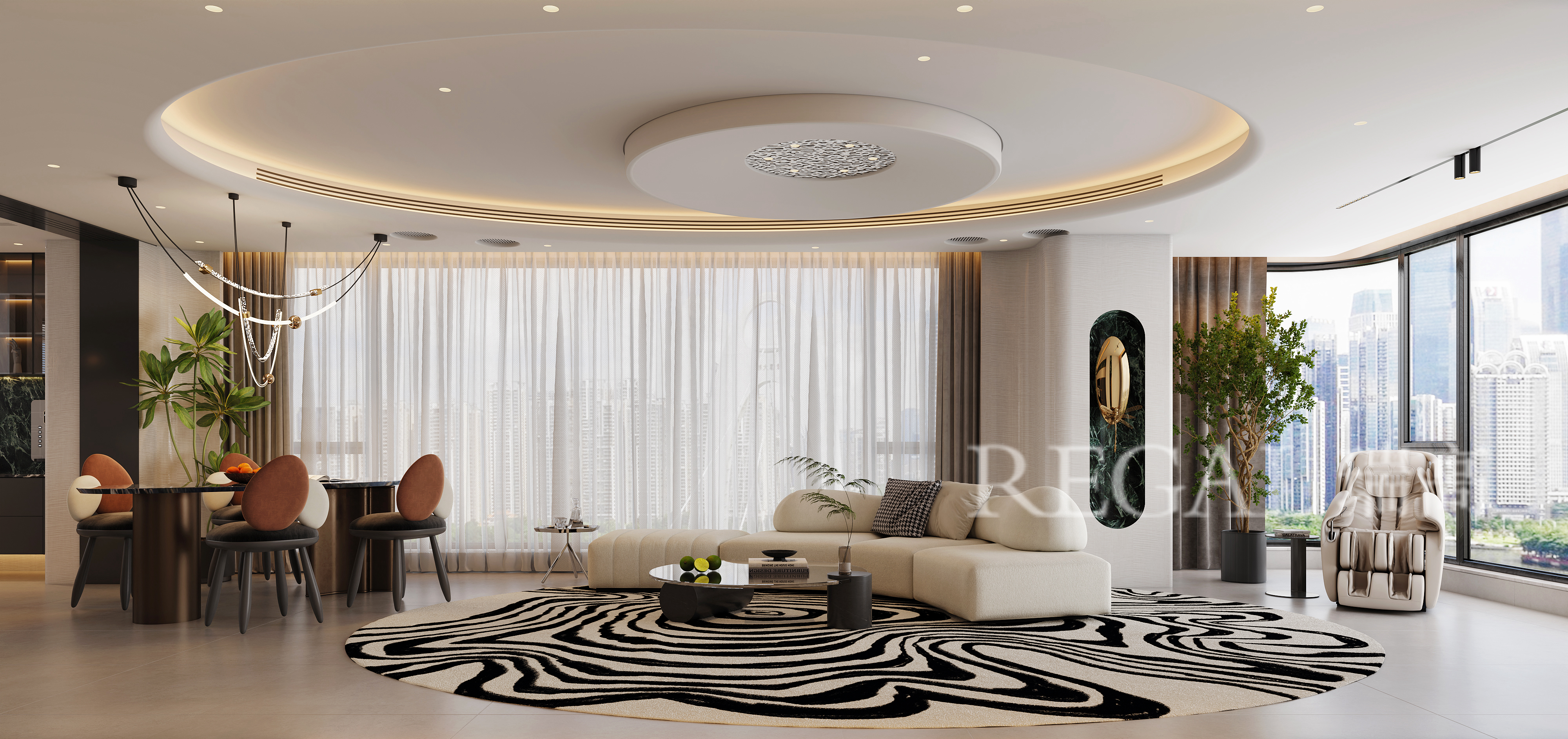 本项目为一座220平方米的现代都市大平层宅邸。设计旨在打破传统布局,创造一个开放式、社交型、充满流动感的居住空间。核心理念为“居中为核,南北贯通”,通过将客厅置于中心,并采用背靠背沙发形成回游动线,完美契合南北通透的户型优势,让空间成为连接家庭情感与社交生活的核心场域。设计强调材质的天然质感与碰撞,营造一个既大气磅礴又温暖舒适的生活居所。