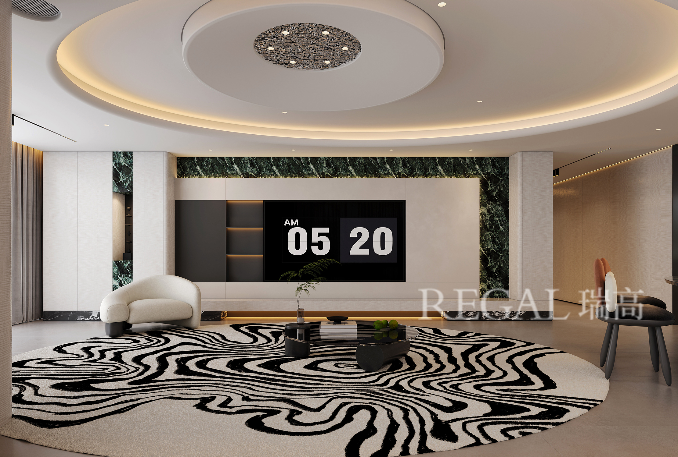 人文滋养,诗意栖居:将东方美学、艺术收藏融入空间,使其不仅是居所,更是精神容器。吊顶中也巧妙的结合“天圆地方”的哲学思考。