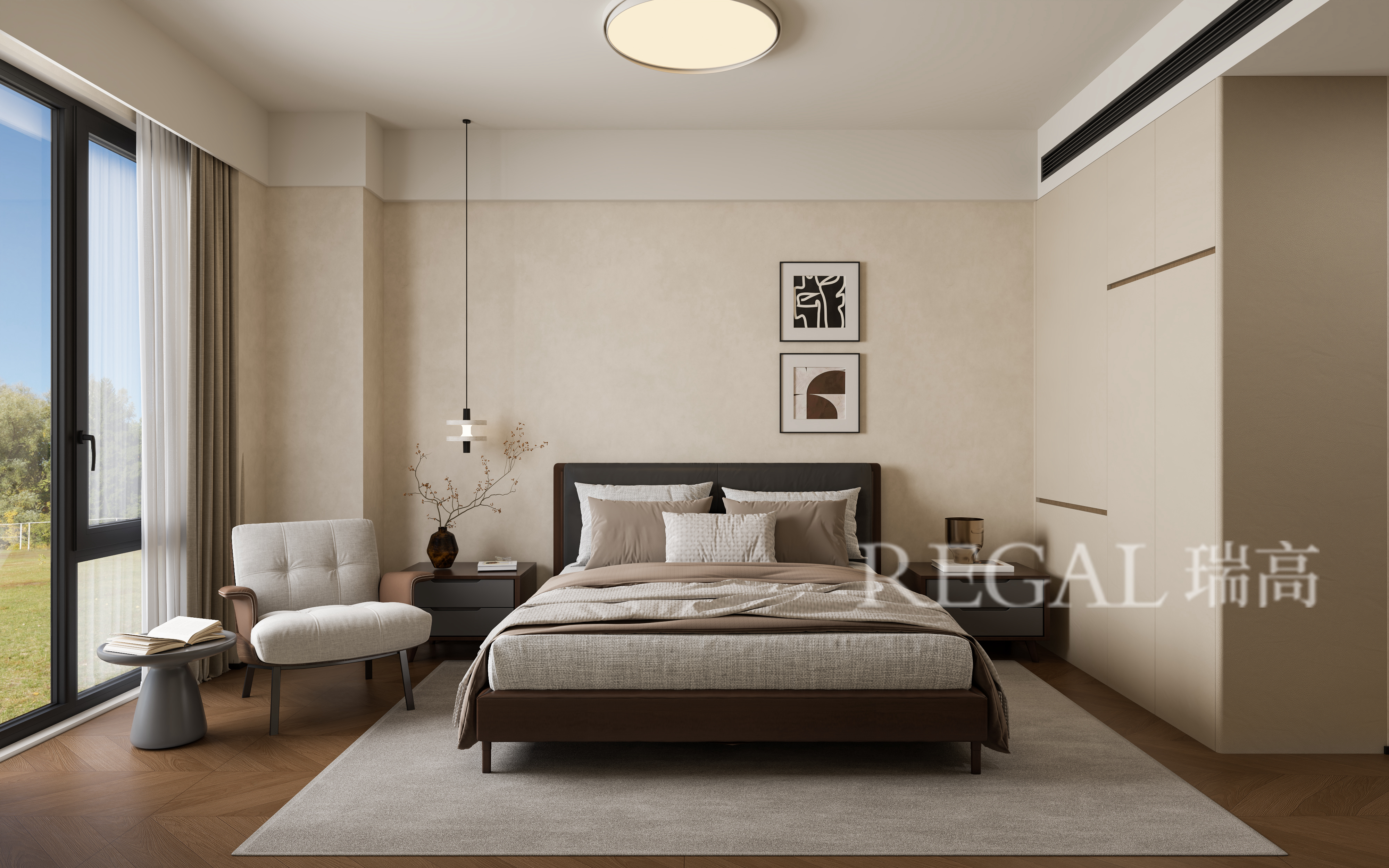 自然静奢,身心热爱:更强调宁静、治愈的氛围。运用微水泥、木质等营造包裹感,色彩更统一柔和,身心在此得到彻底的安放。