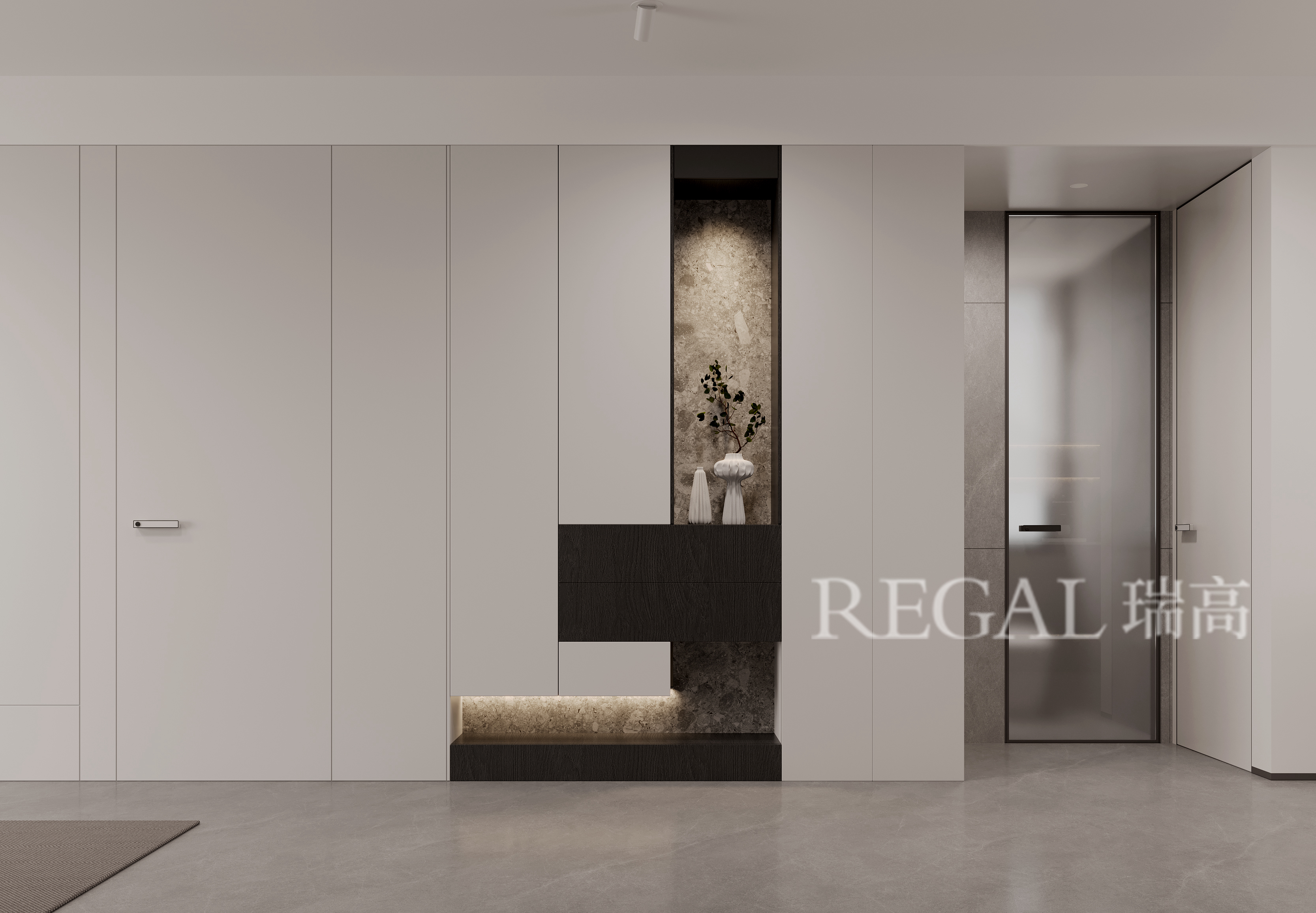 空间上以利落直线划分功能场域,隐形收纳系统消融冗余,浅灰基底交织原木肌理与哑光岩板,金属饰条作点睛之笔,摒弃繁复装饰,于材质本真与比例平衡中传递静谧质感,既契合现代起居的实用诉求,更彰显克制而高阶的居住美学。
