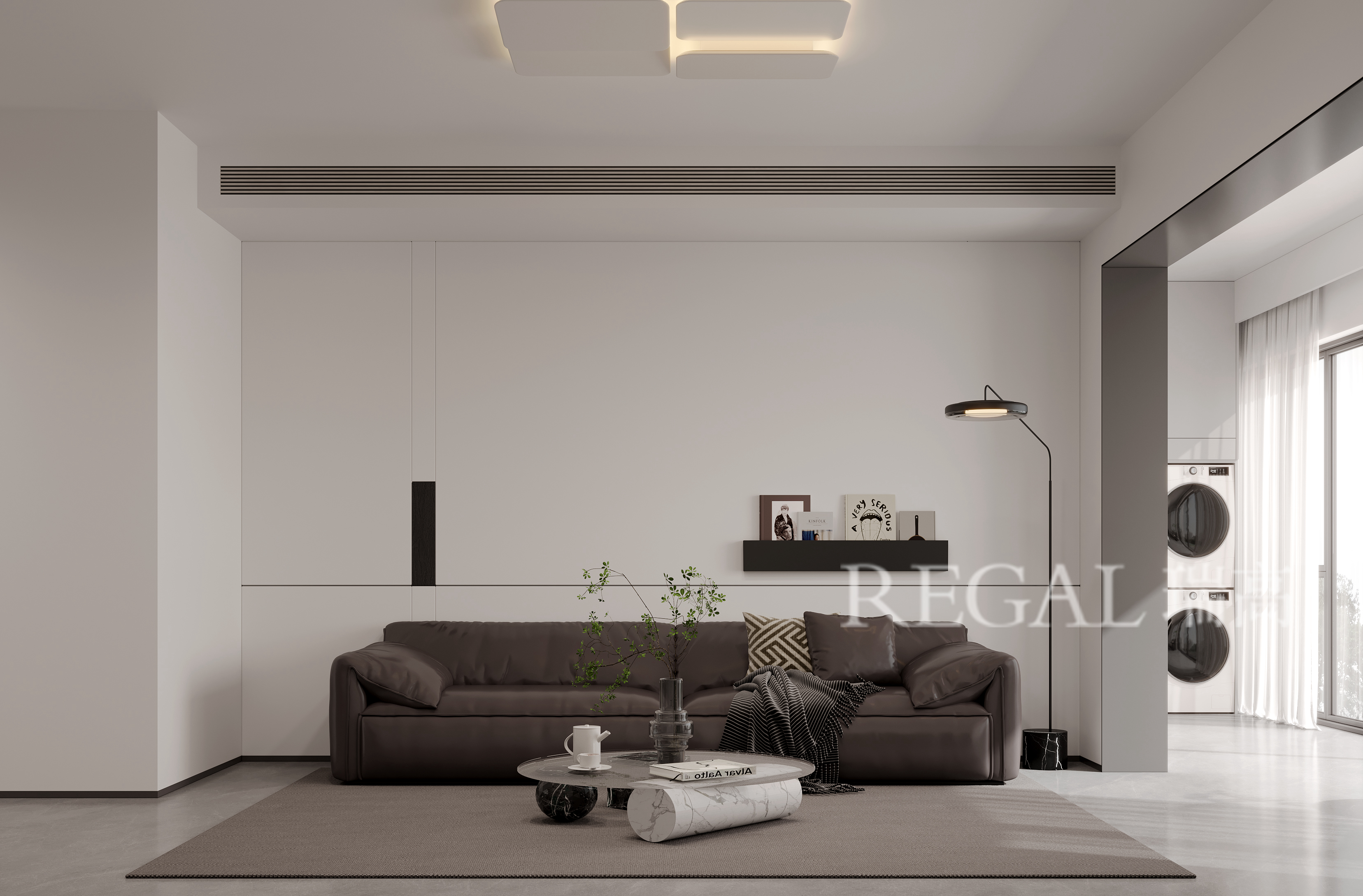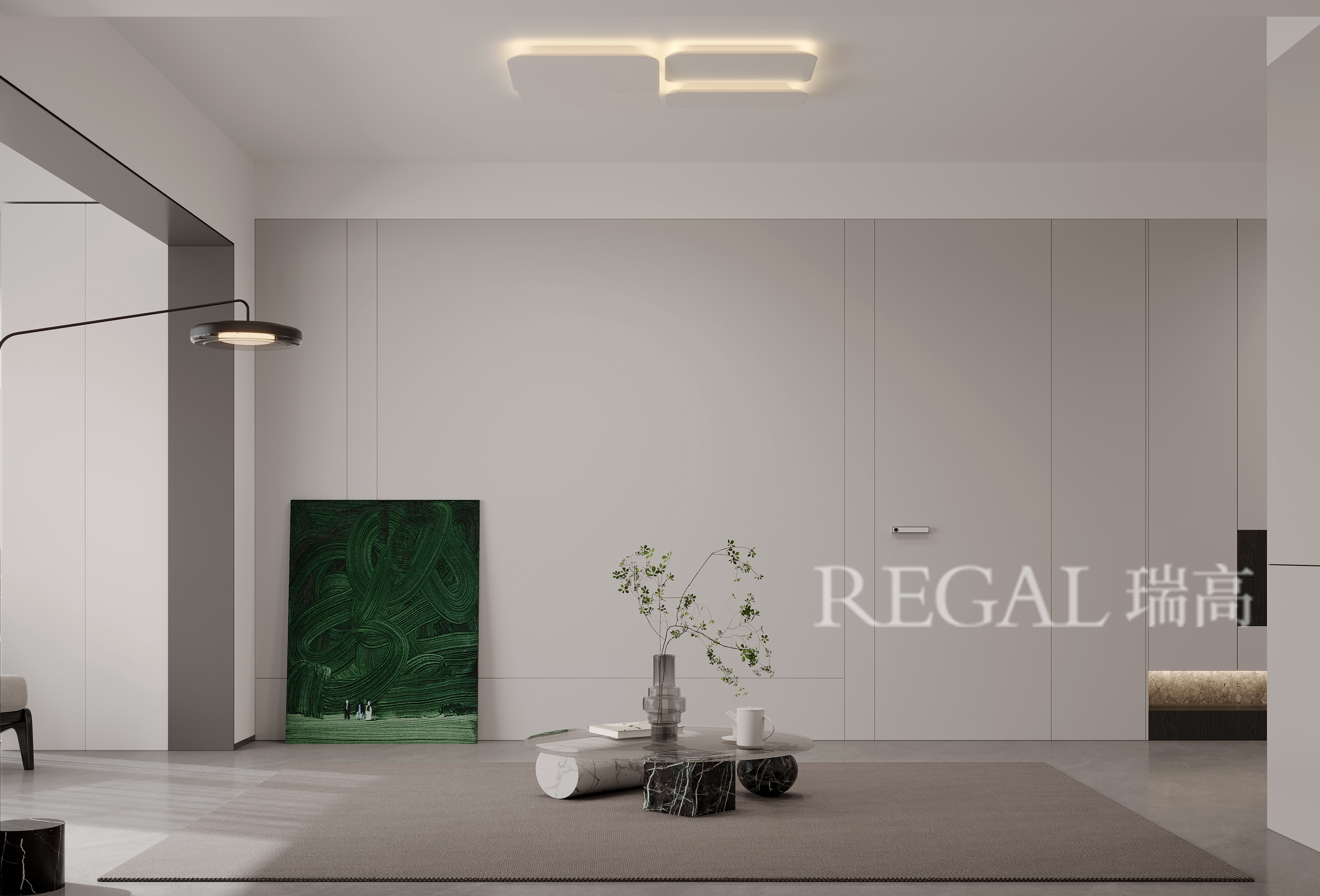 “简而不减,质藏于形” 以意式极简为内核,借大面积落地窗引天光入境,让光影流动勾勒空间纯粹轮廓。