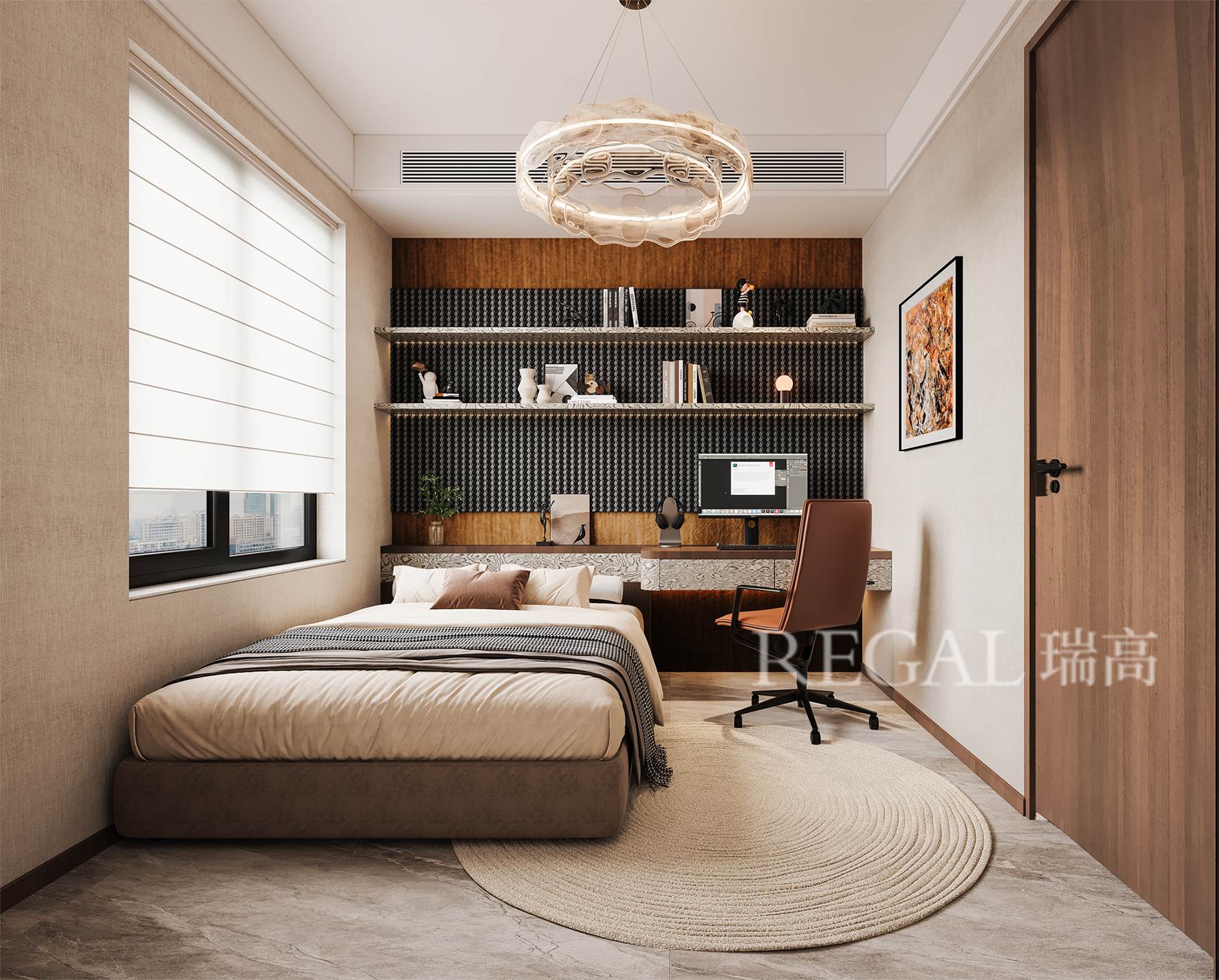 以意式轻奢为内核,通过米白、暖棕与金属质感的精妙糅合,于空间中铺陈优雅格调。弧形线条柔化结构,大理石与实木材质碰撞出精致肌理,灯光层次营造奢适氛围,同时融入电竞区等个性场景.