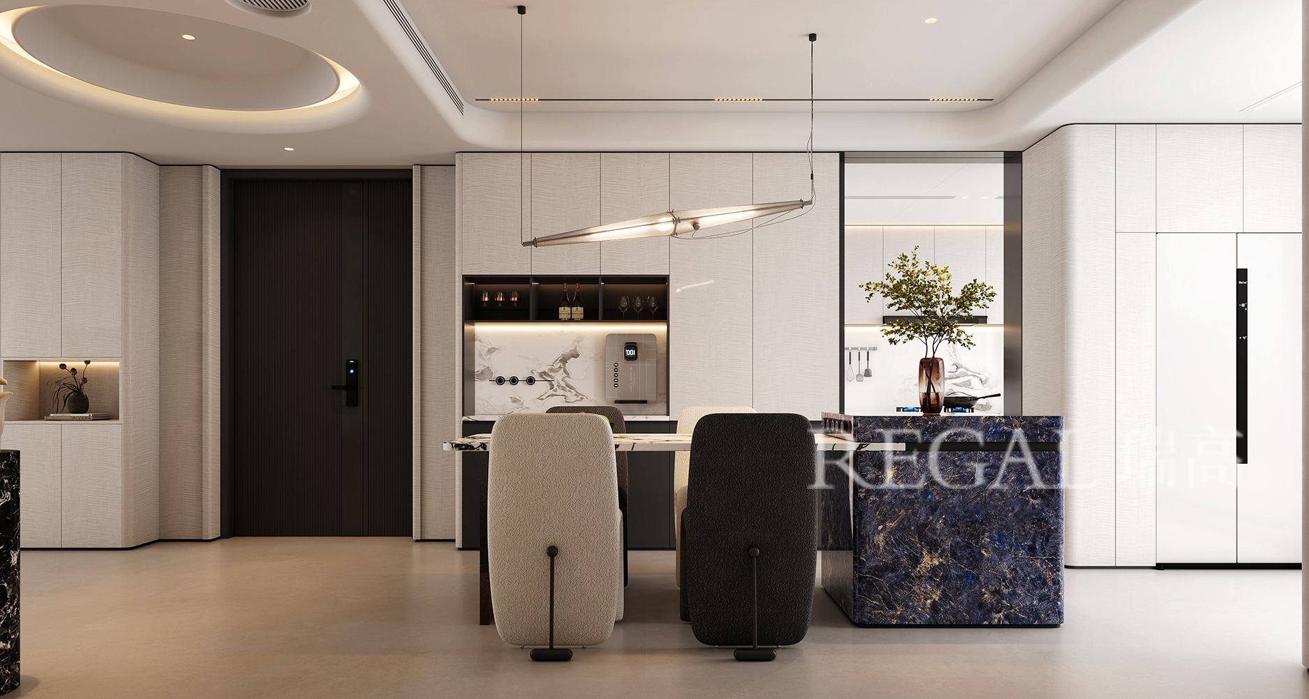 设计旨在充分利用底层复式的空间特性,将地上层作为家庭主要生活区,将地下层打造为一个集高端会客、休闲娱乐、静谧休憩于一体的“家庭私享空间”。