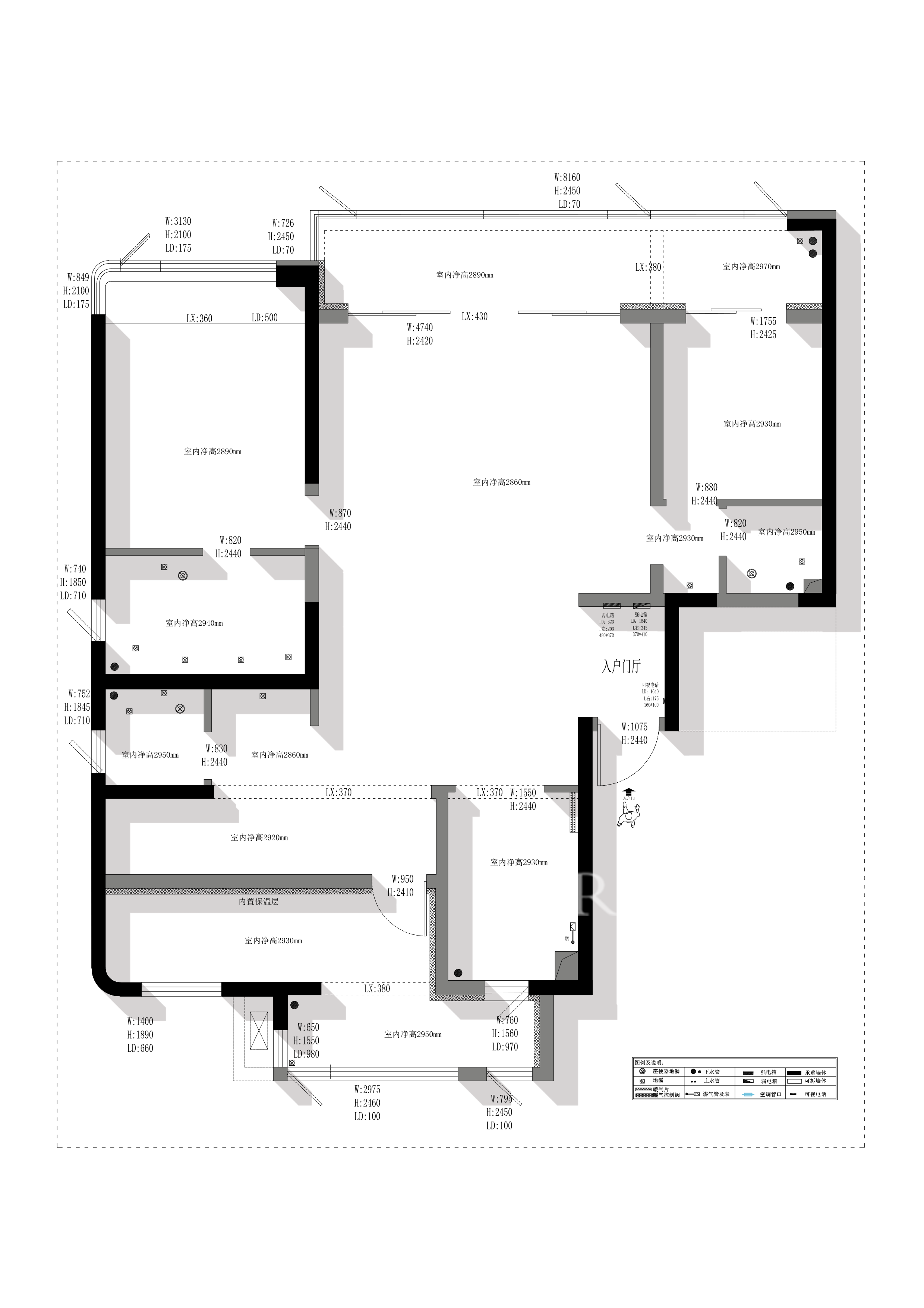 本案设计整体采用现代意识风格为设计思路。全房采用明装无主灯的形式设计营造柔和高级氛围。