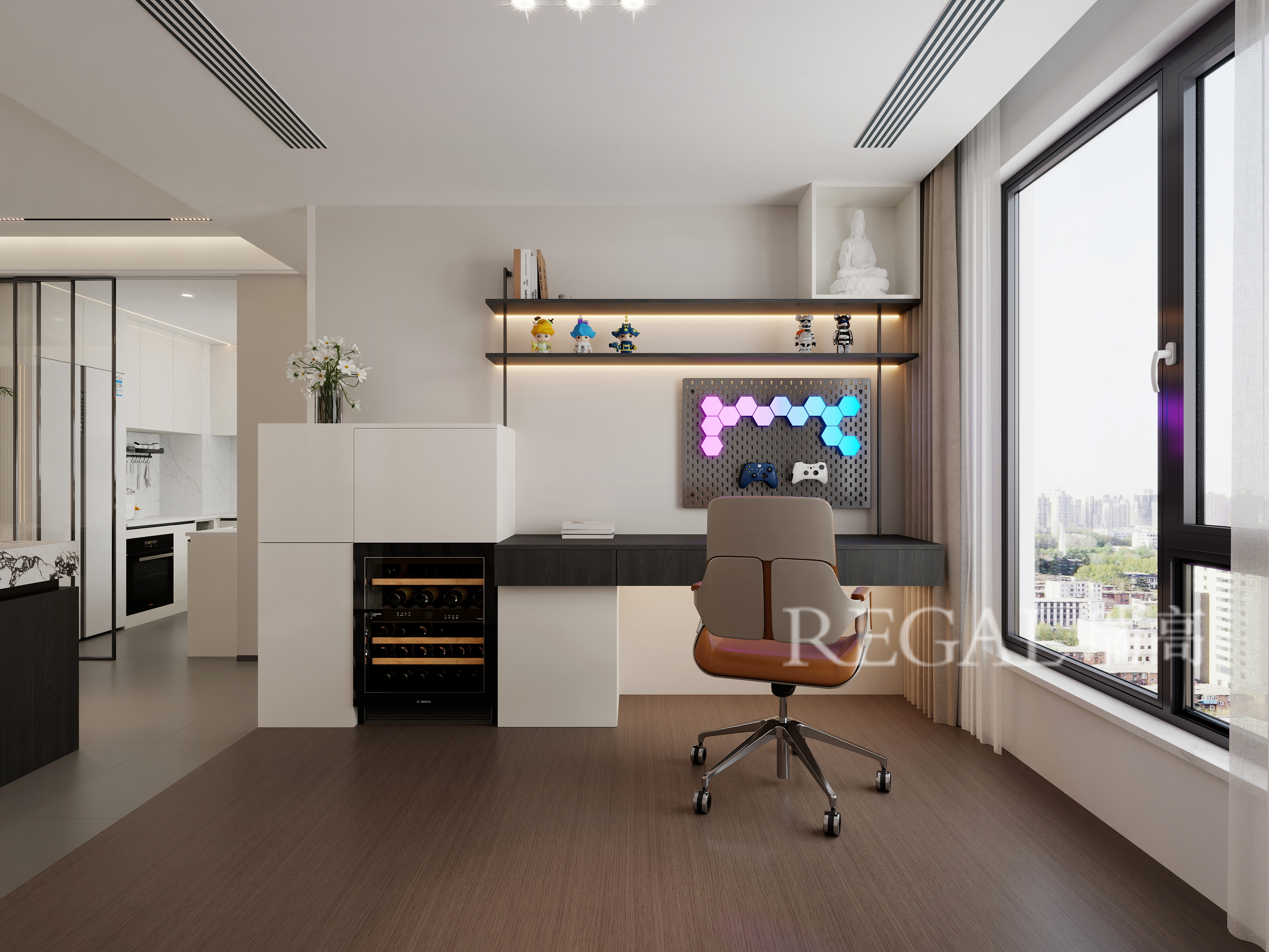 以意式轻奢为内核,通过米白、暖棕与金属质感的精妙糅合,于空间中铺陈优雅格调。弧形线条柔化结构,大理石与实木材质碰撞出精致肌理,灯光层次营造奢适氛围,同时融入电竞区等个性场景.