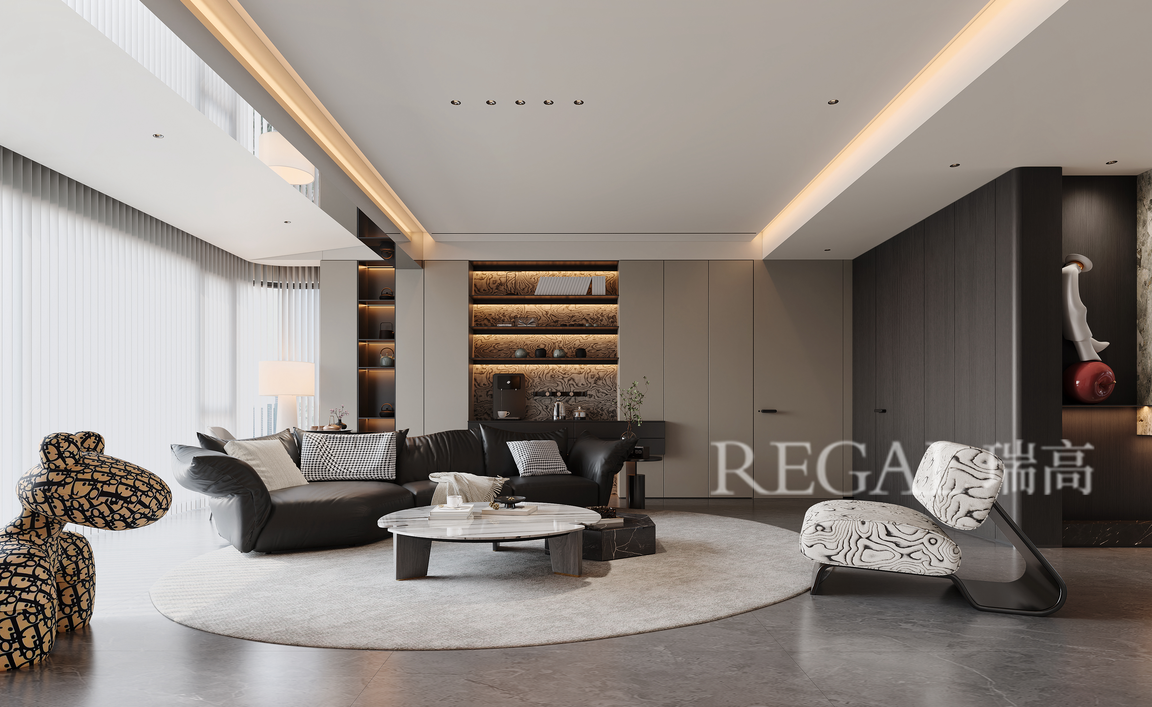 “简而不减,质藏于形” 以意式极简为内核,借大面积落地窗引天光入境,让光影流动勾勒空间纯粹轮廓。