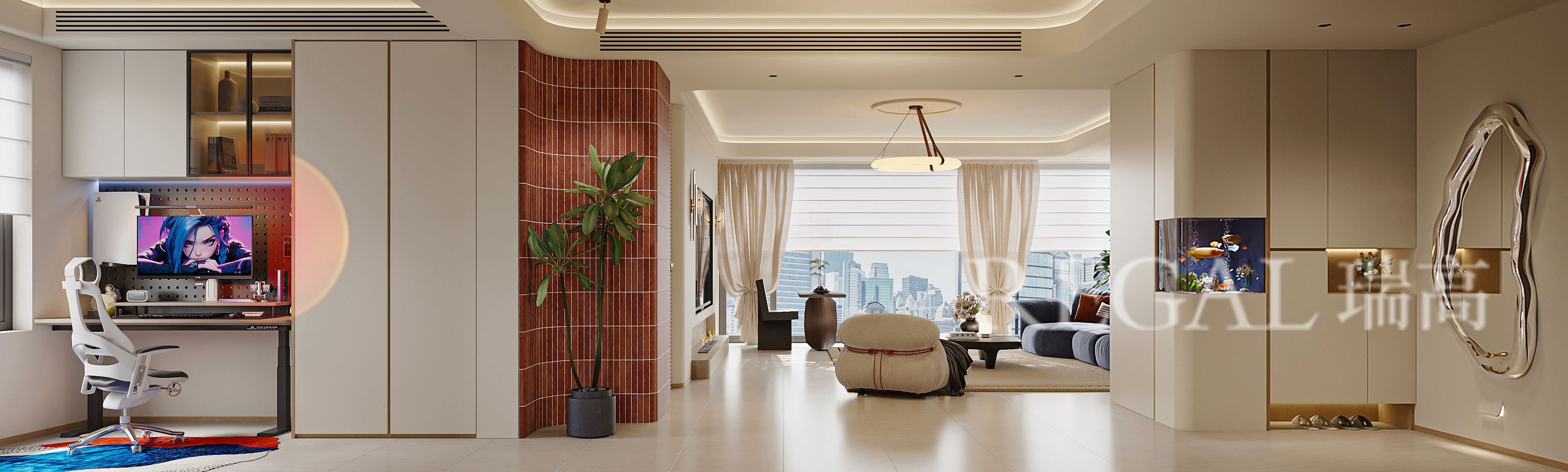 本案软装以法式奶油风为核心,融合浪漫优雅与温润治愈,打造松弛慵懒的人居空间。整体以低饱和奶杏色为基底,删繁就简,以柔美的线条、温润的材质与克制的用色为语言,营造出兼具浪漫感与高级感的居住氛围。空间以棉麻布艺、温润木作与琉璃灯具为核心,搭配艺术挂画、绿植与手工陶艺点缀,弱化冗余装饰,凸显材质本真质感。通过柔和的氛围光影、舒适的家具尺度与统一的风格调性,构建出通透、静谧、松弛的整体场域,传递出慢生活的哲学理念,打造出兼具实用性与艺术感的当代理想家居。