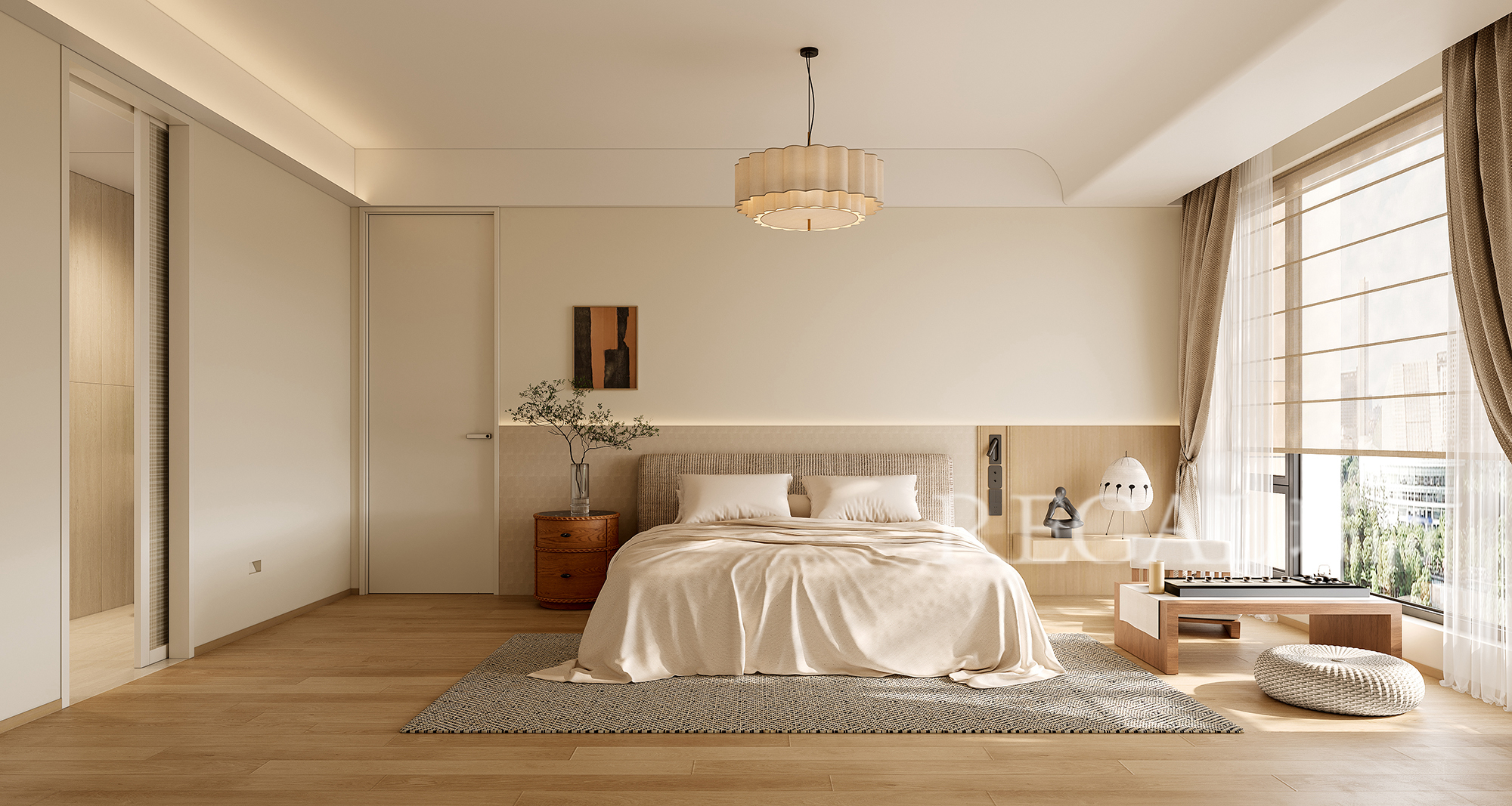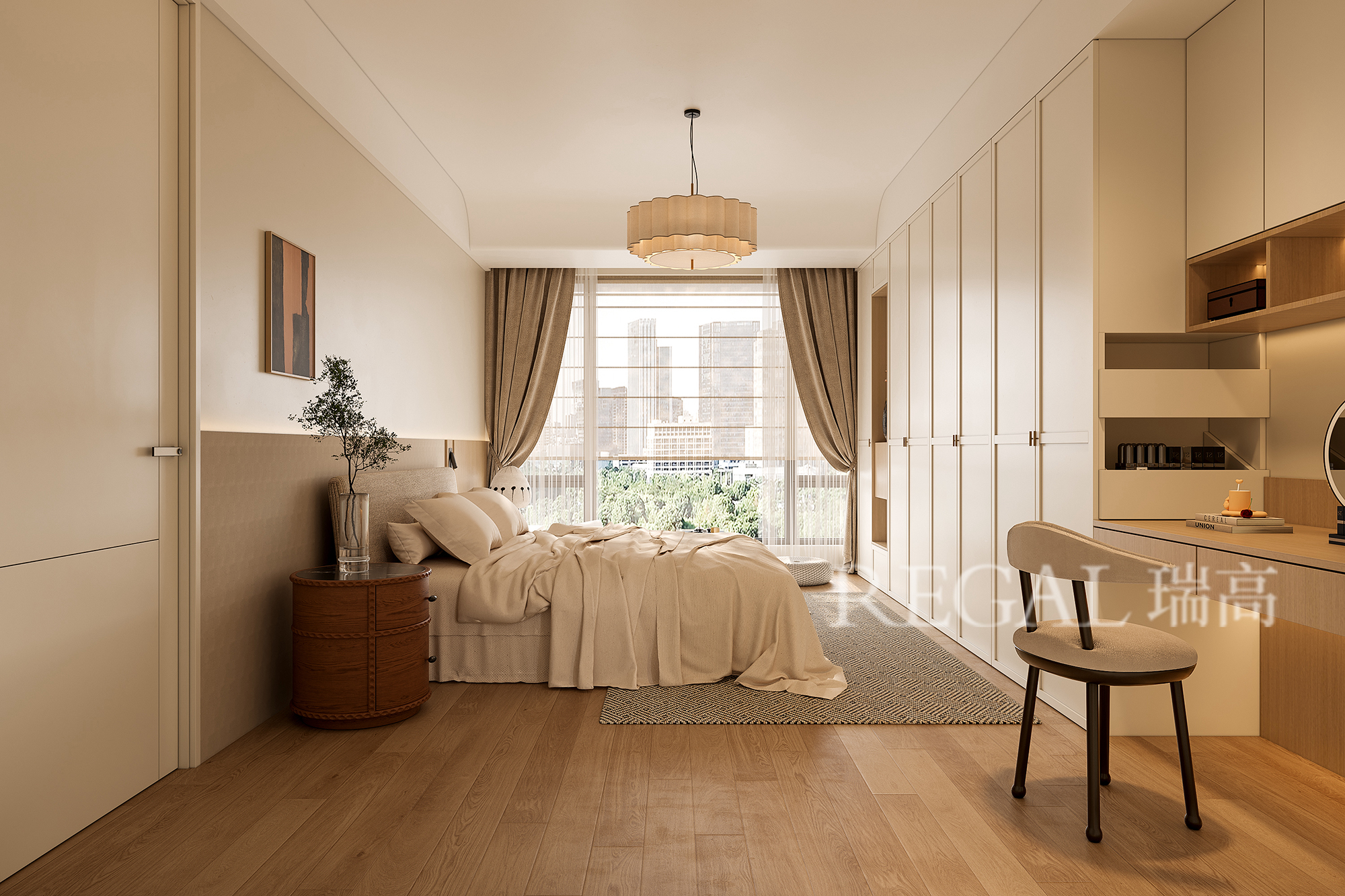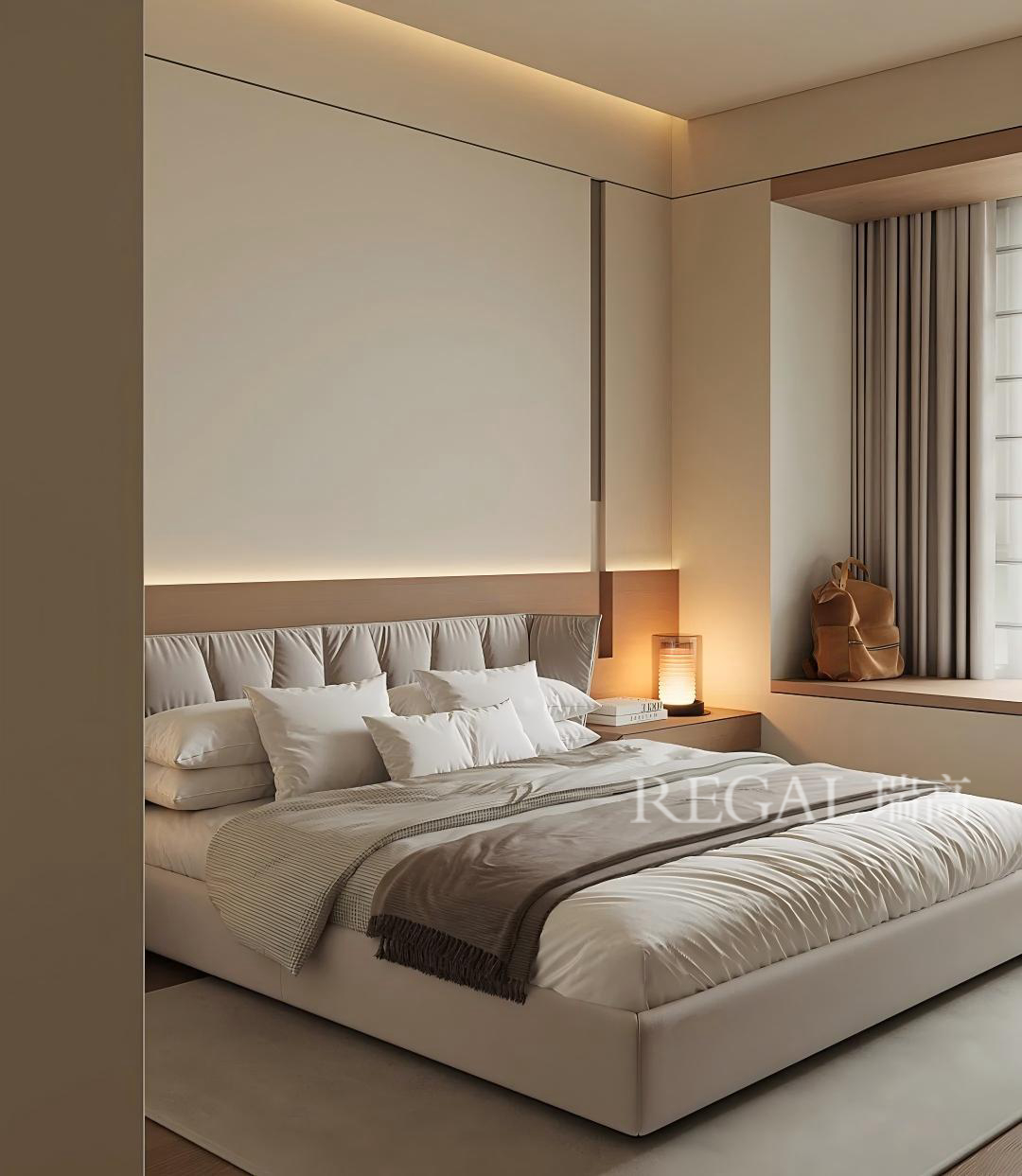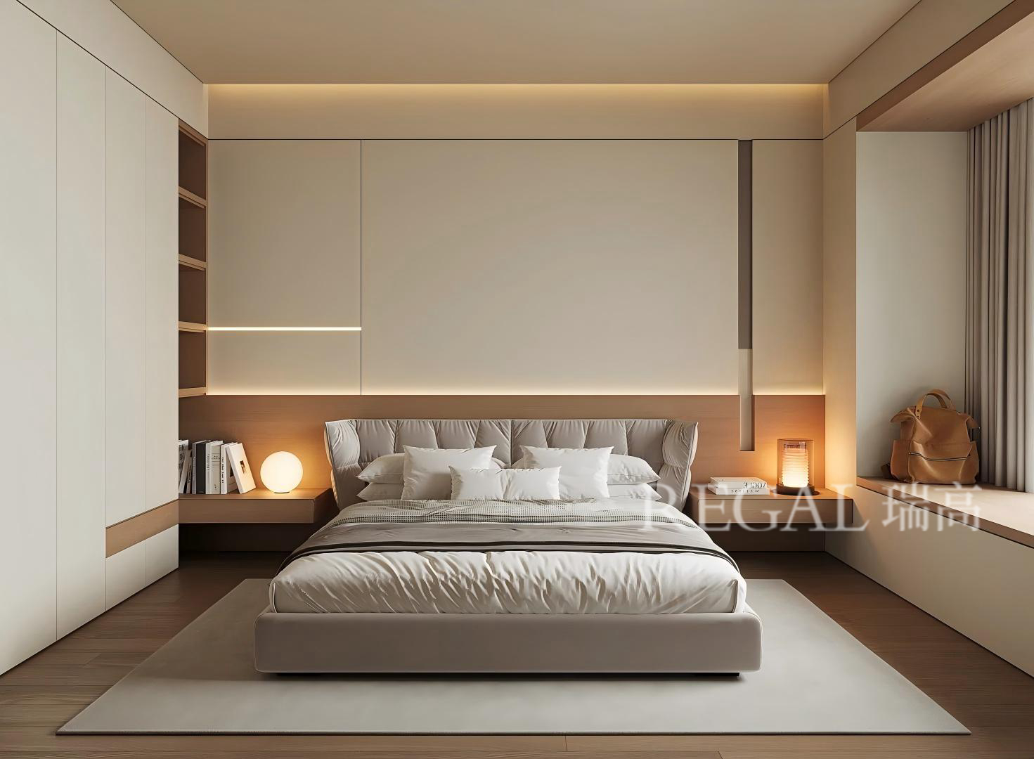优质的睡眠能够缓解白天的忙碌与疲惫,让全身的肌肉恢复力量。而一个温馨且柔软的空间,能极大程度地建立一个“睡眠磁场”从空间的隔音配置处理、地面温暖的木地板、温馨柔软的家具软装饰品、给人抚慰的光源配置、可随意调节的床头阅读灯以及恰到好处的香薰等,从视觉、听觉、嗅觉、触觉多维度打造一个理想的卧室空间。